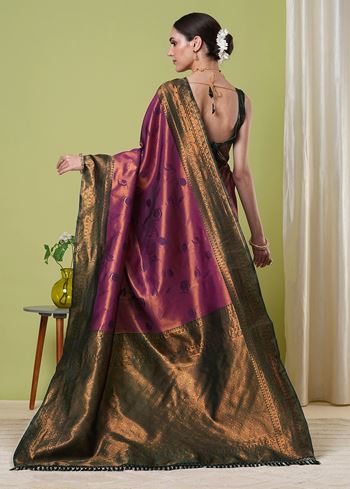 Wine Banarasi Silk Saree With Beautiful Jacquard Designer Work