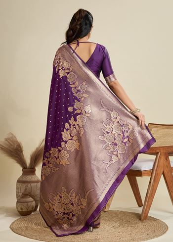 The saree is paired with a matching wine Banarasi silk blouse that complements its graceful tone and craftsmanship. With a naturally elegant drape and soft, lustrous texture, this saree brings comfort and sophistication together effortlessly.