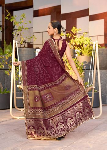 Wine Cotton Silk Woven Designer With Table And Foil Printed Partywear Saree