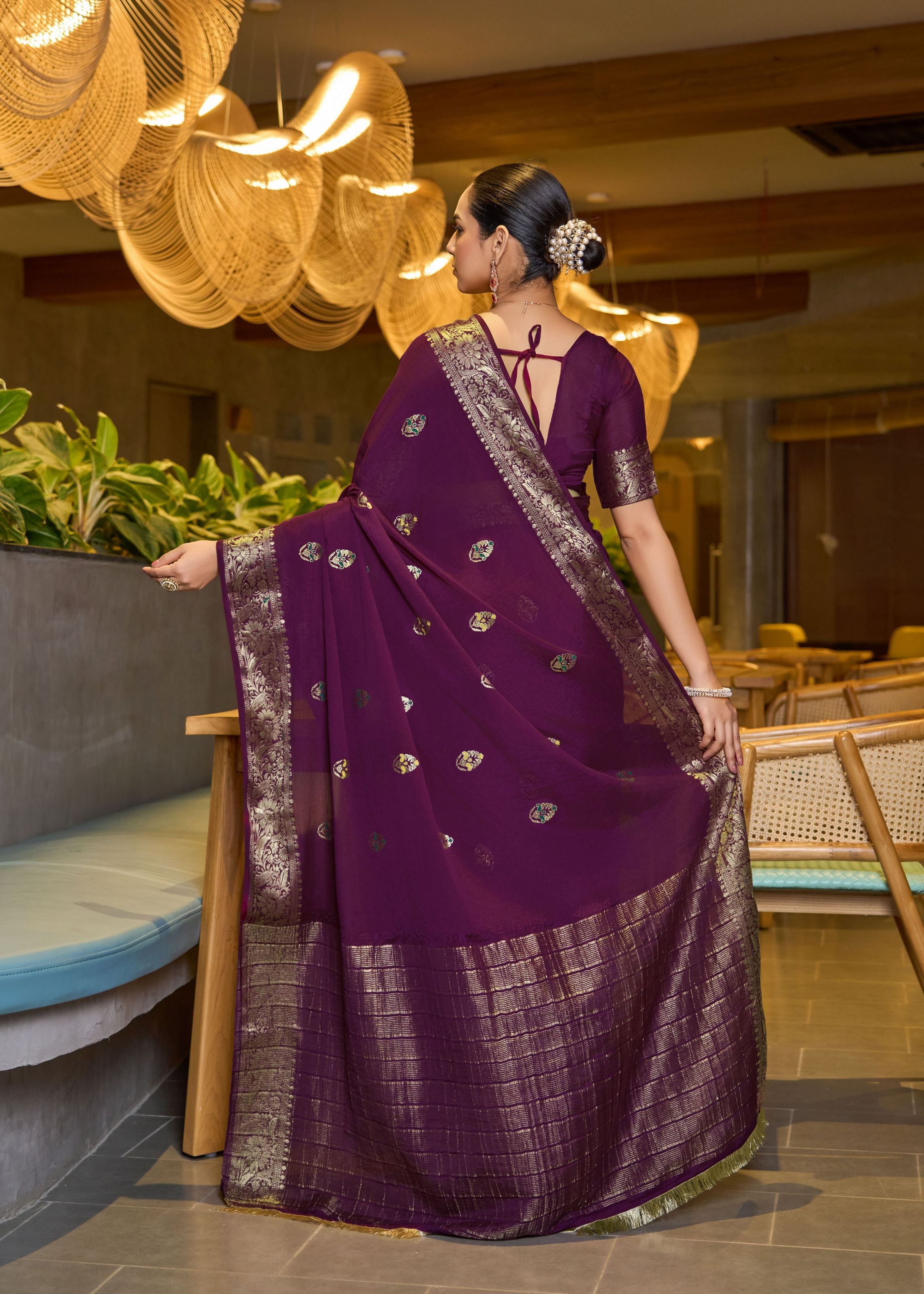 Wine Ethnic Chinon Woven Designer Partywear Saree