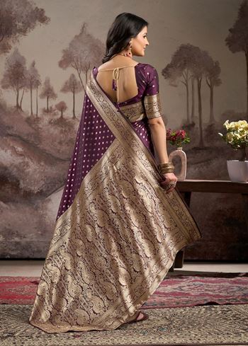 Wine Lichi Silk Woven Rich Pallu Designer Heavy Partywear Saree