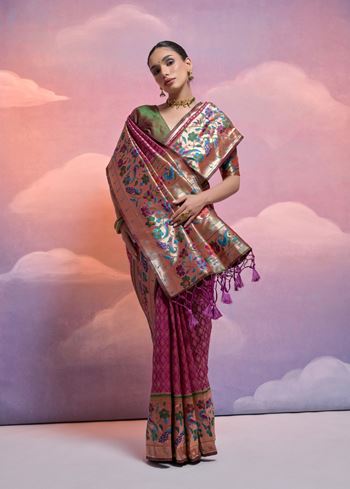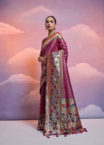 Wine Paithani Silk Saree with Meenakari Border and Zari Weaves