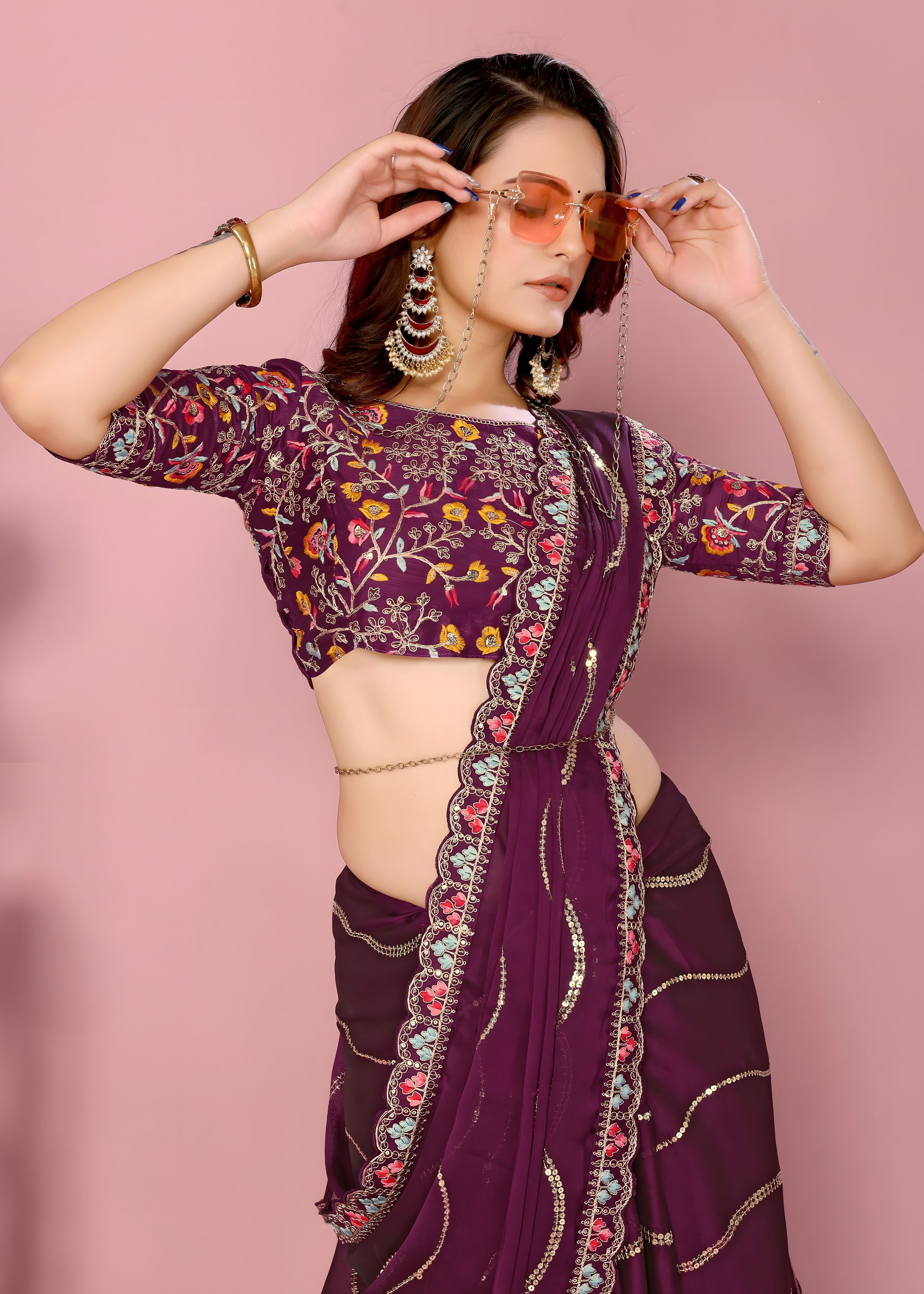 Indulge in regal charm with Aethnofit Fashions’ Wine Rangoli Silk Saree—an exquisite blend of luxurious fabric, elegant embroidery, and shimmering sequin highlights. The deep wine hue exudes sophistication, making this saree an impeccable choice for receptions, festive nights, or wedding celebrations where style meets tradition.