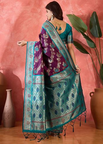 The saree boasts exquisite woven craftsmanship, which enhances its ethnic appeal and gives it a grand look. It comes paired with a stunning green silk blend blouse, creating a striking contrast that elevates the overall design. This combination reflects classic beauty while maintaining a modern, stylish vibe.