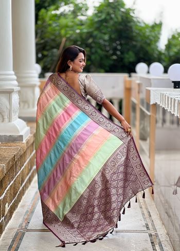 Wine Soft Silk Woven Jacquard Designer Festive Wear Traditional Saree