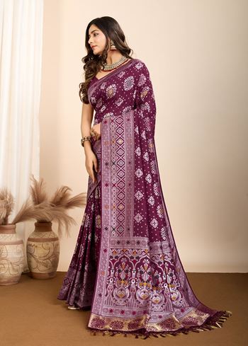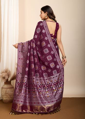Wine Soft Silk Woven Meenakari Designer Ceremonial Partywear Saree