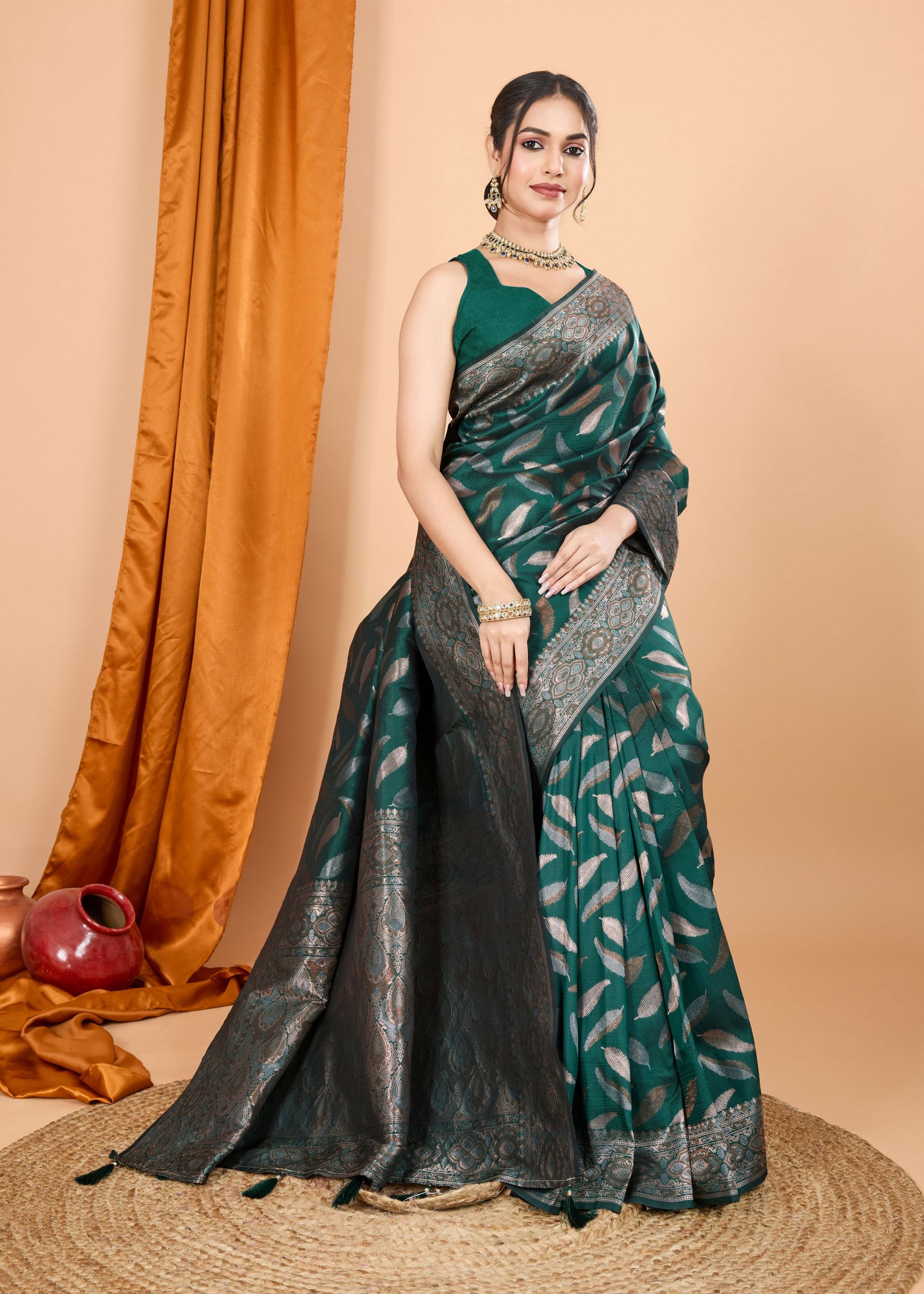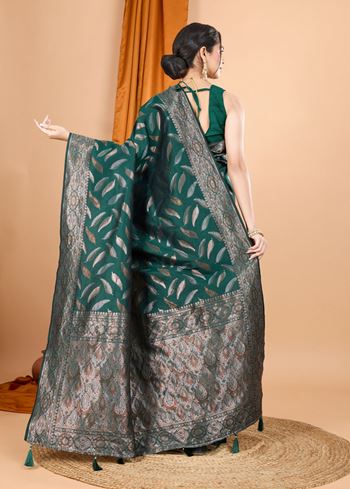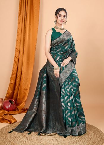 Woven Double Jari Designer Green Soft Silk Partywear Saree