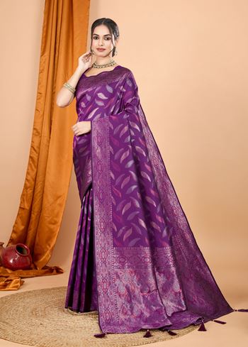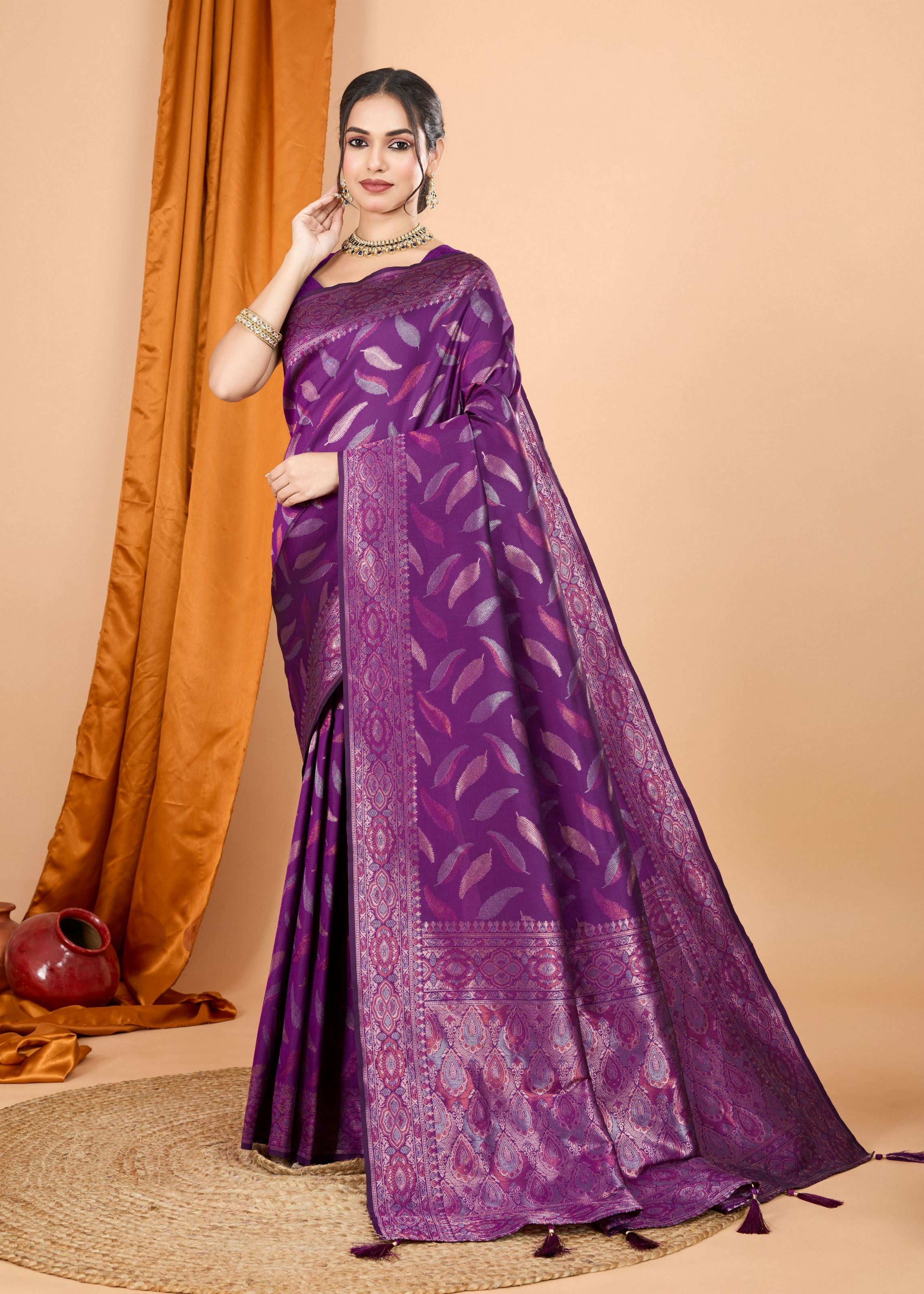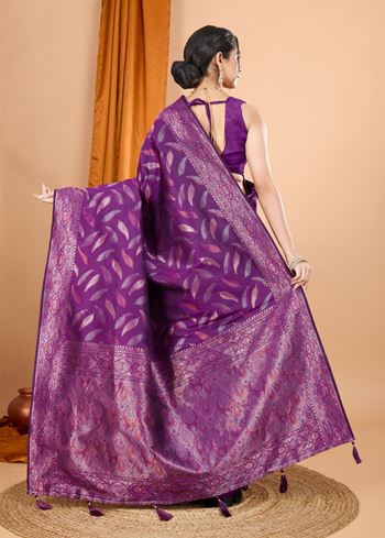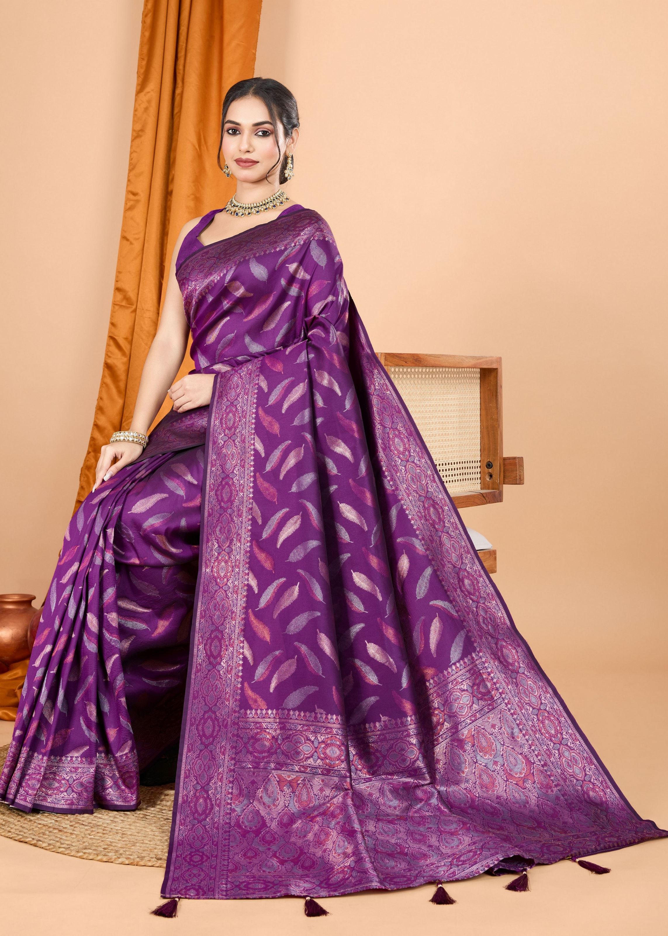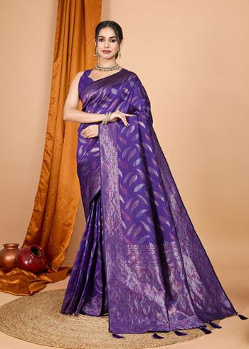 Woven Double Jari Designer Purple Soft Silk Partywear Saree