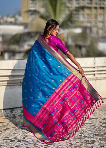 Woven Gold Jari Peacock Designer Blue Paithani Silk Ethnic Saree