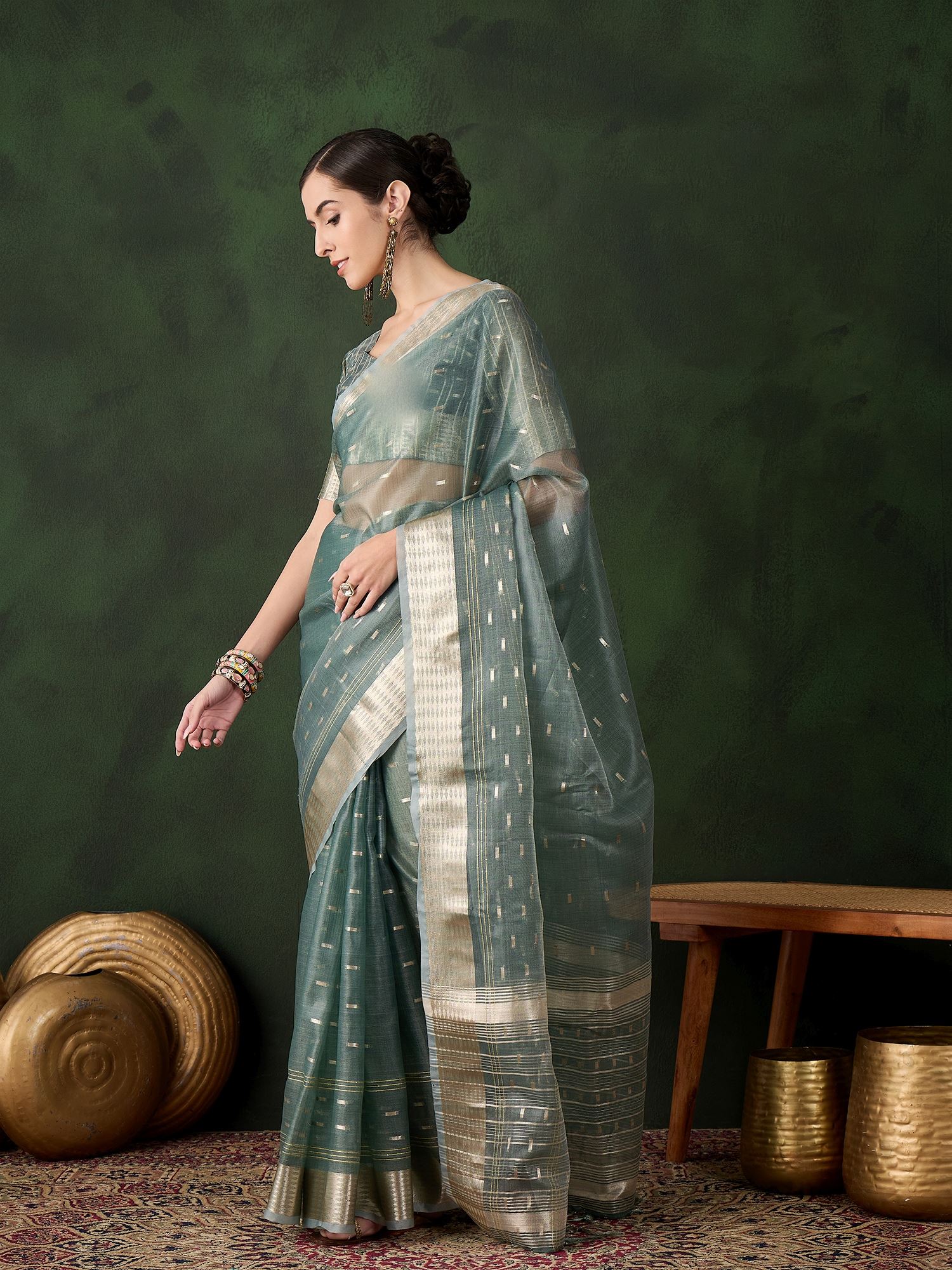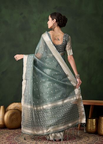 Woven Jacquard Designer Green Khadi Organza Festive Saree