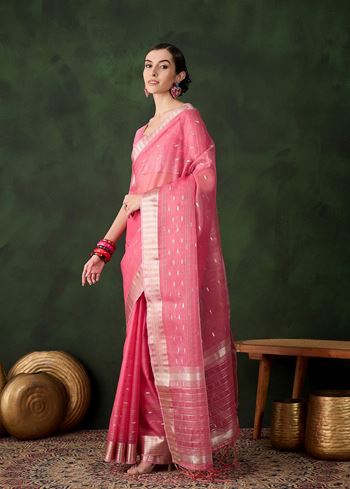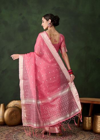 Woven Jacquard Designer Pink Khadi Organza Festive Saree