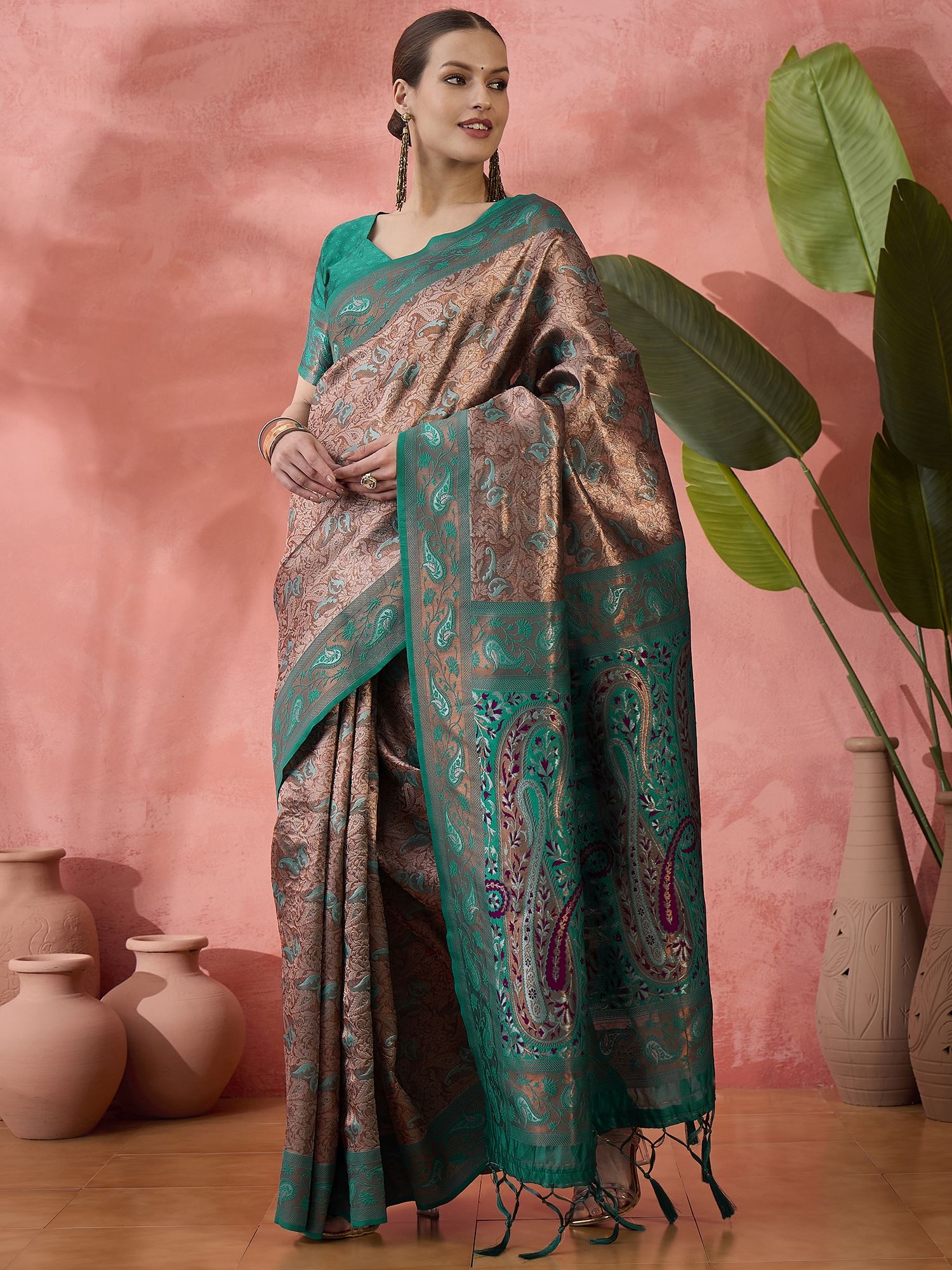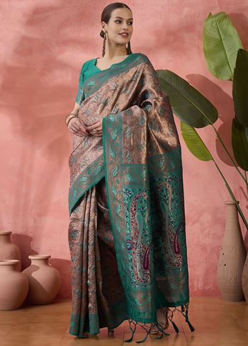 Woven Jacquard Designer Silk Blended Ethnic Partywear Ceremonial Rama Saree