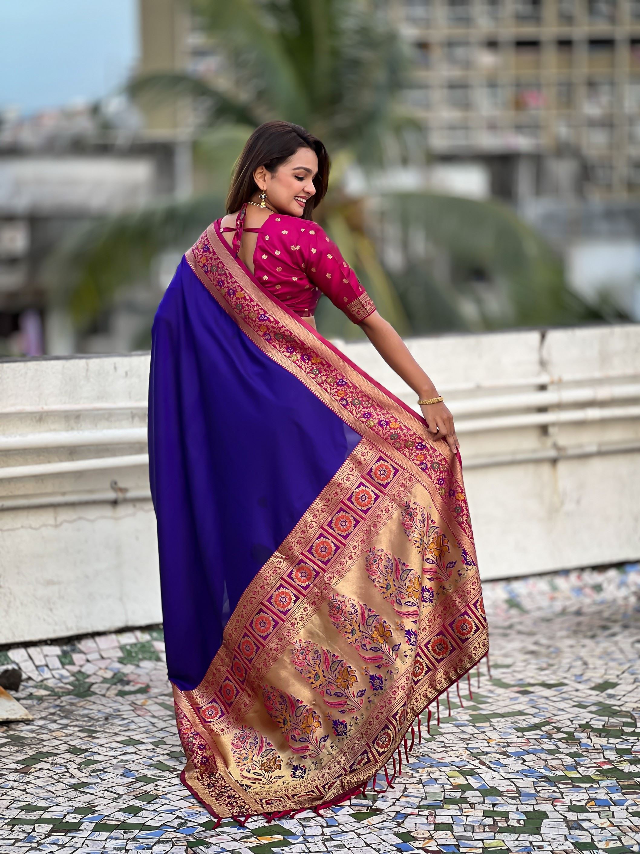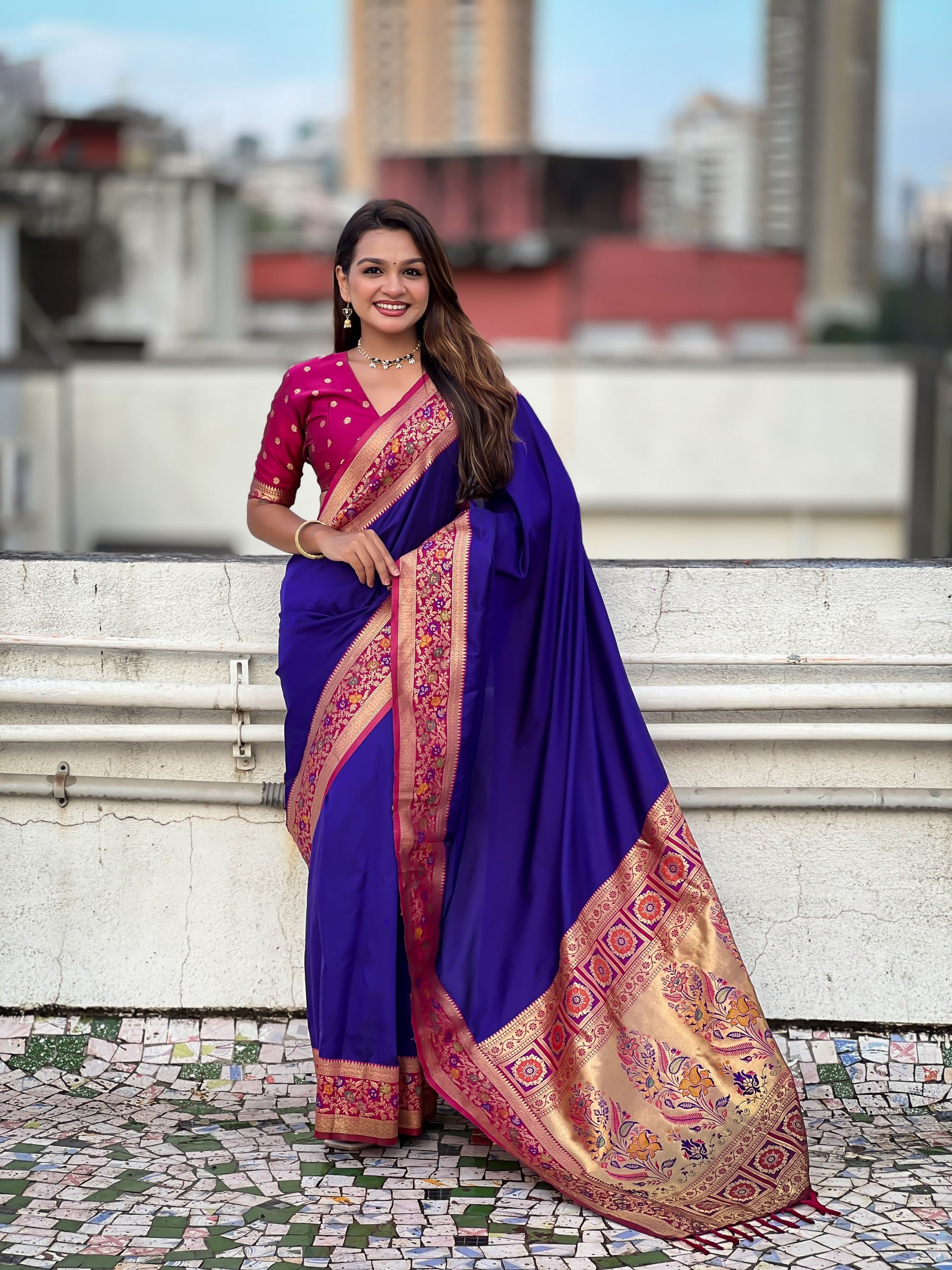Woven Kadiyal Paithani Gala Designer Blue Soft Silk Ethnic Saree