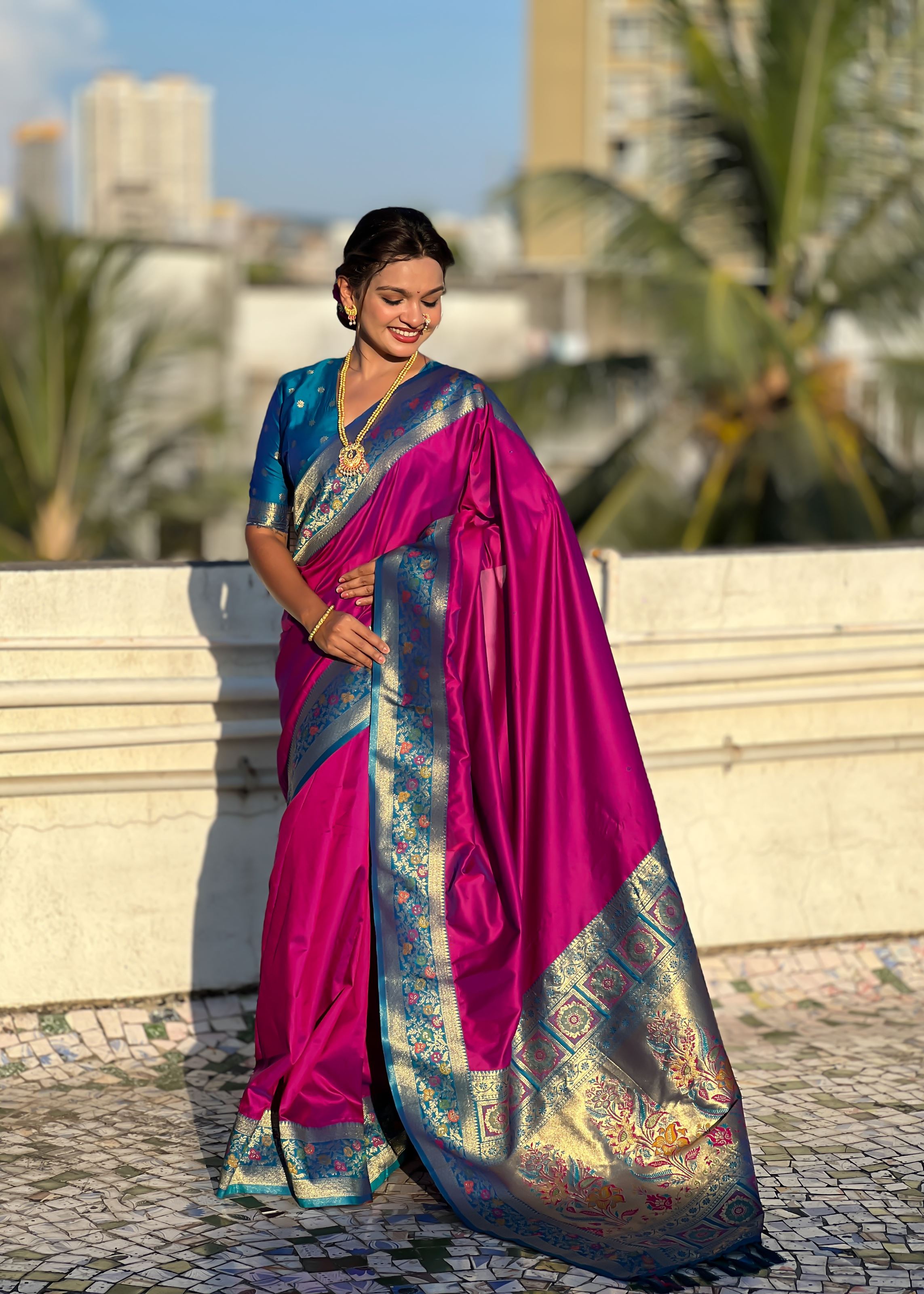 Woven Kadiyal Paithani Gala Designer Magenta Soft Silk Ethnic Saree