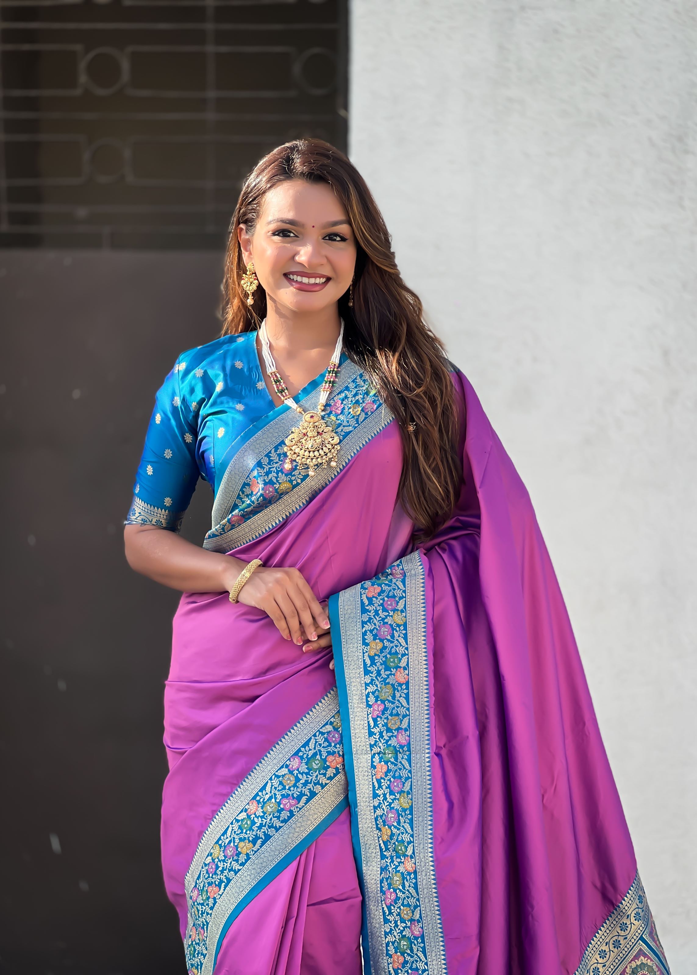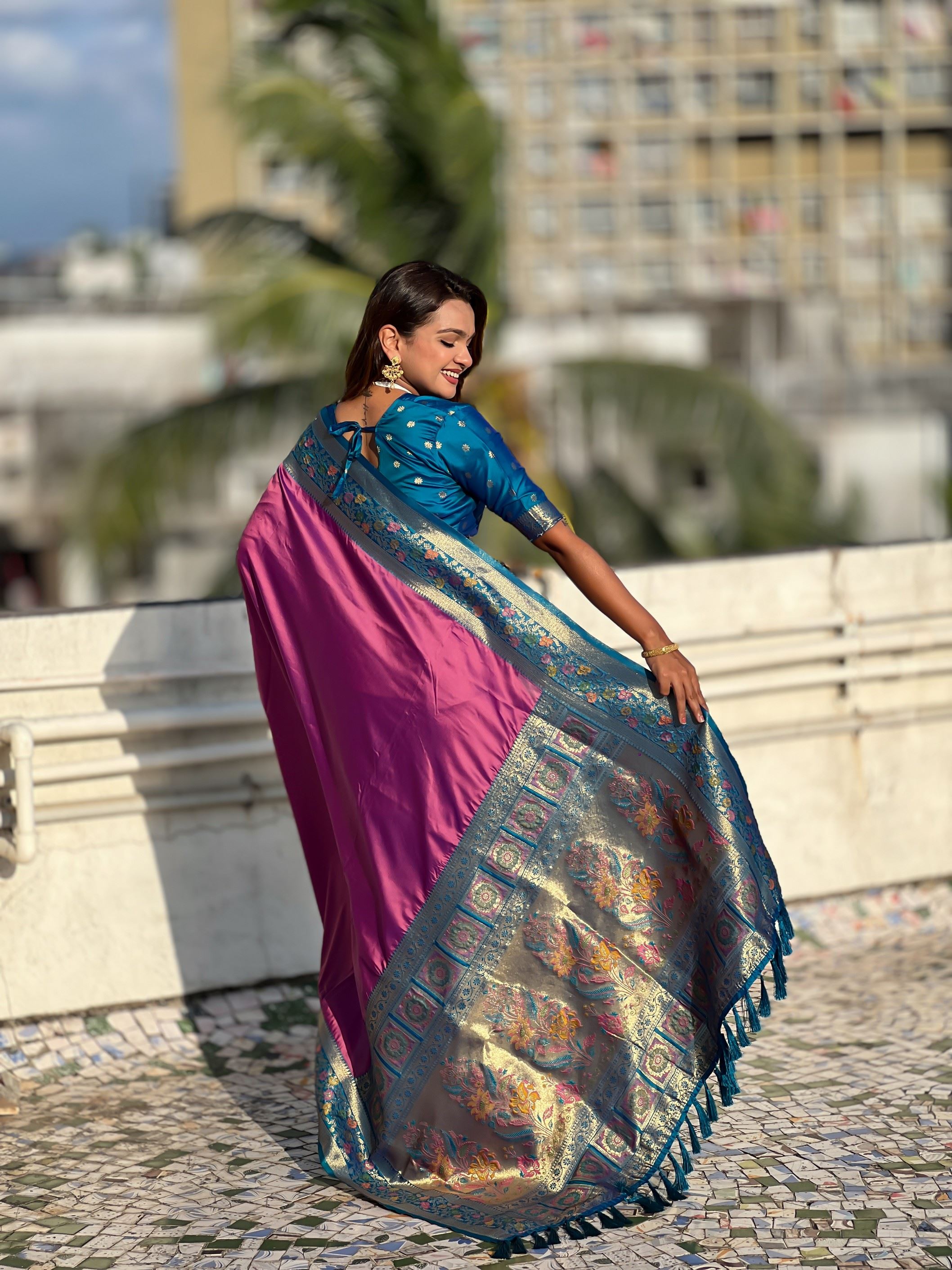 Woven Kadiyal Paithani Gala Designer Purple Soft Silk Ethnic Saree