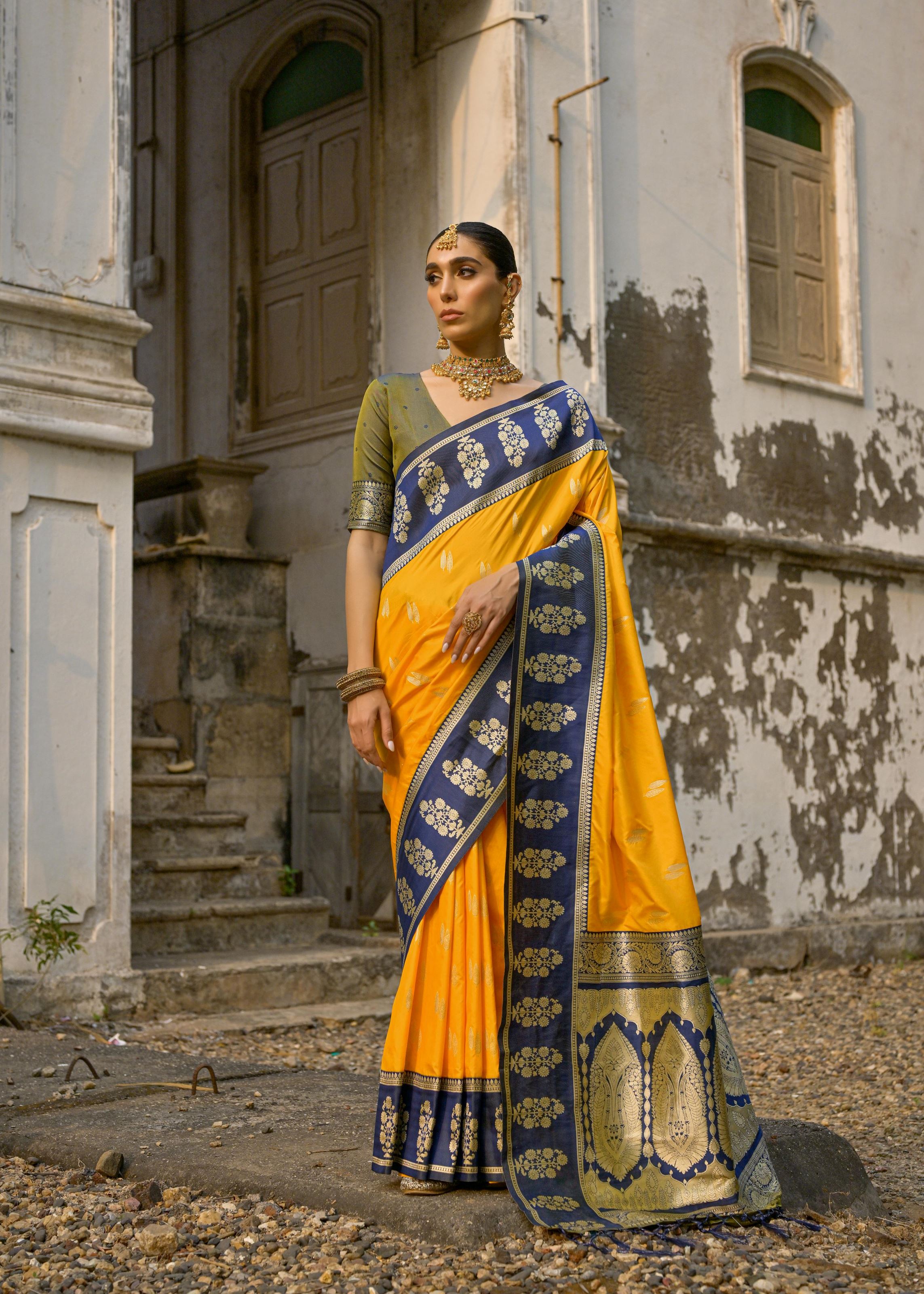 Yellow Banarasi Silk Woven Jari Designer Heavy Rich Looks Ceremonial Saree