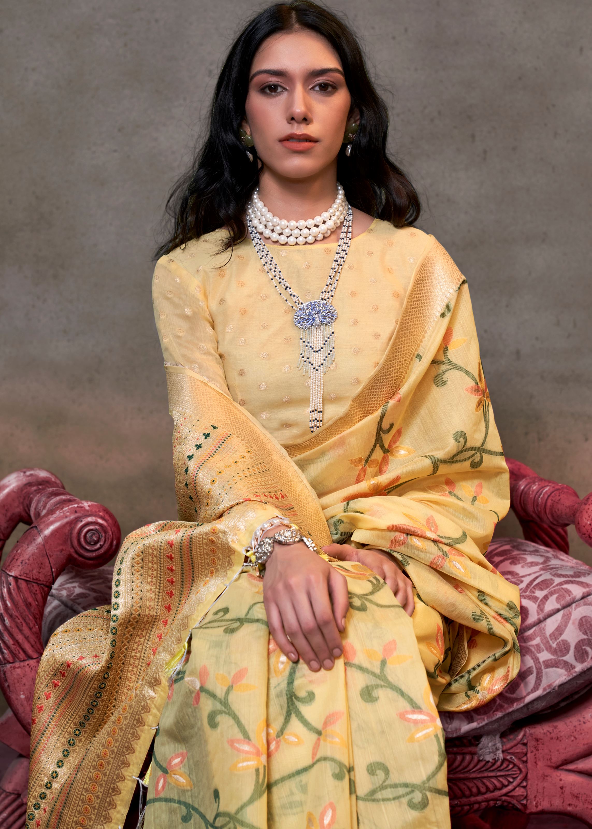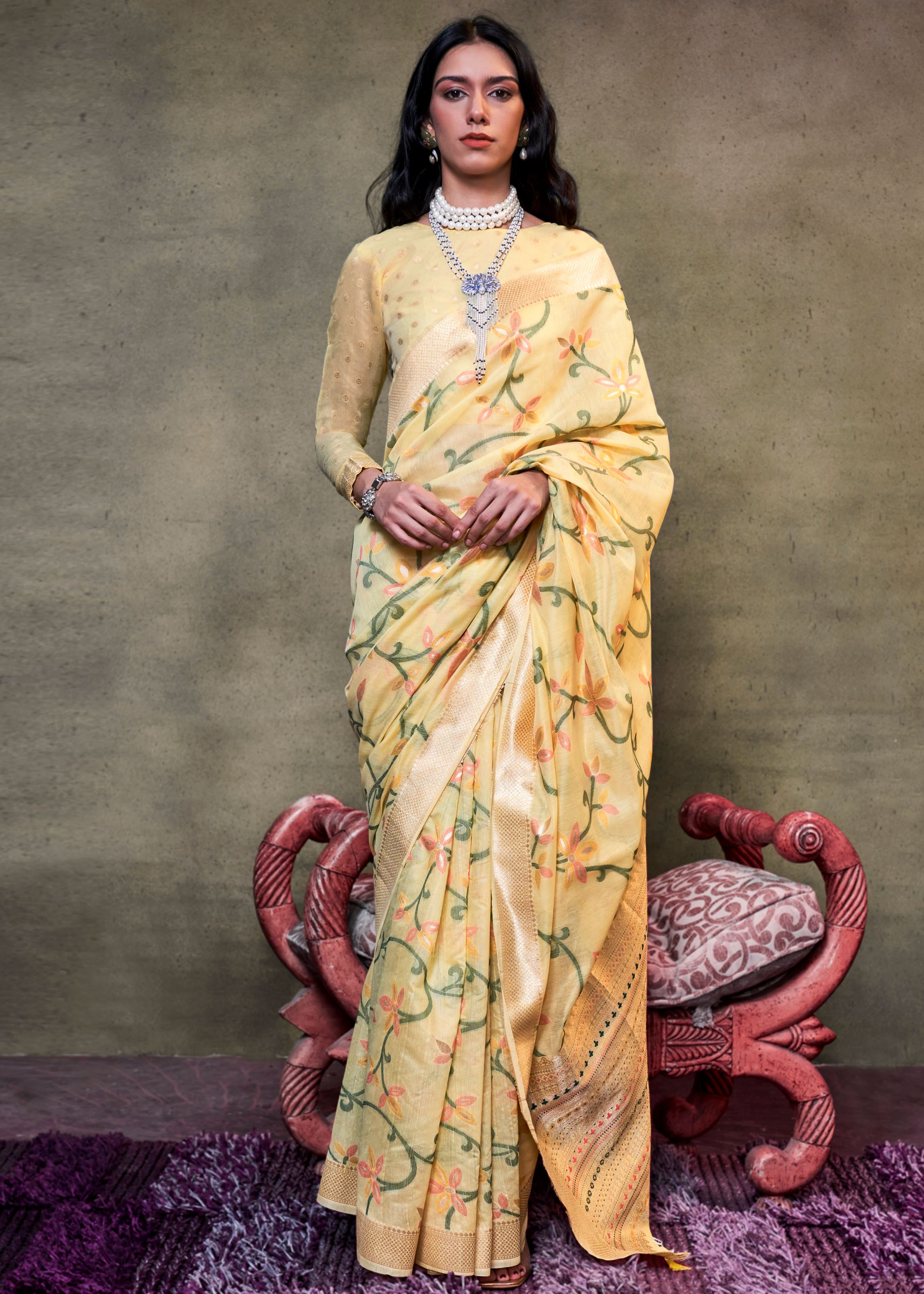Yellow Span Cotton Saree With Jacquard Woven Work