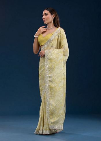 Brighten up every celebration with the Yellow Georgette Girlie Partywear Saree from Aethnofit Fashions. Crafted from lightweight and flowing georgette fabric, this saree drapes elegantly, offering both style and comfort for parties, festive occasions, and evening gatherings. Its vibrant yellow shade adds a cheerful and lively touch, making it a perfect choice for festive celebrations or social events.