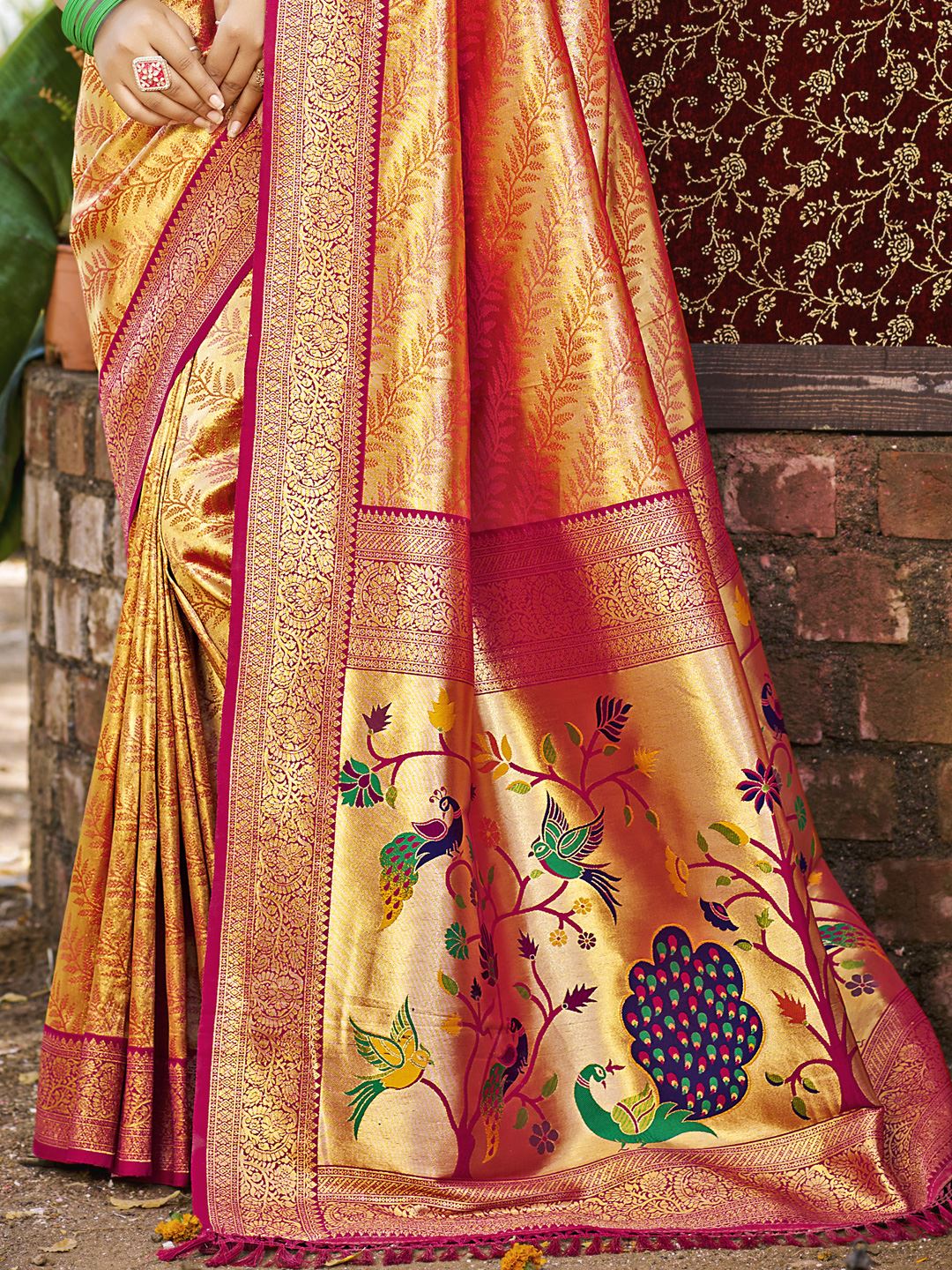 Yellow Color Kanjivaram Silk Saree With Minimalist Elegance and Classy Drape