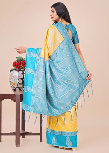 Yellow Lichi Silk Woven Designer Festive Graceful Saree