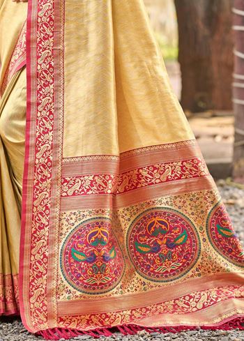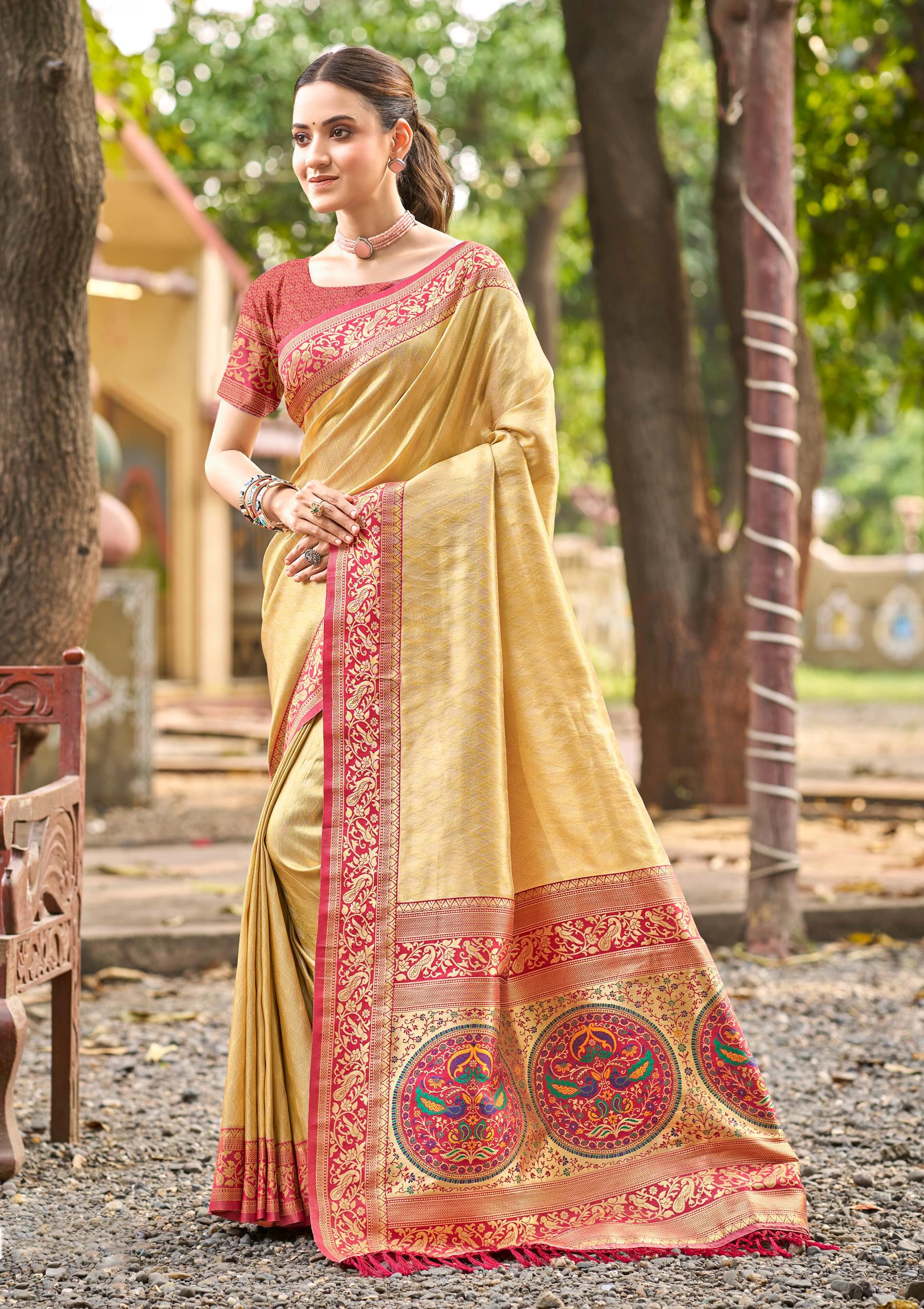 Yellow Multi Color Kanjivaram Silk Saree With Classic Drape and Refined Beauty