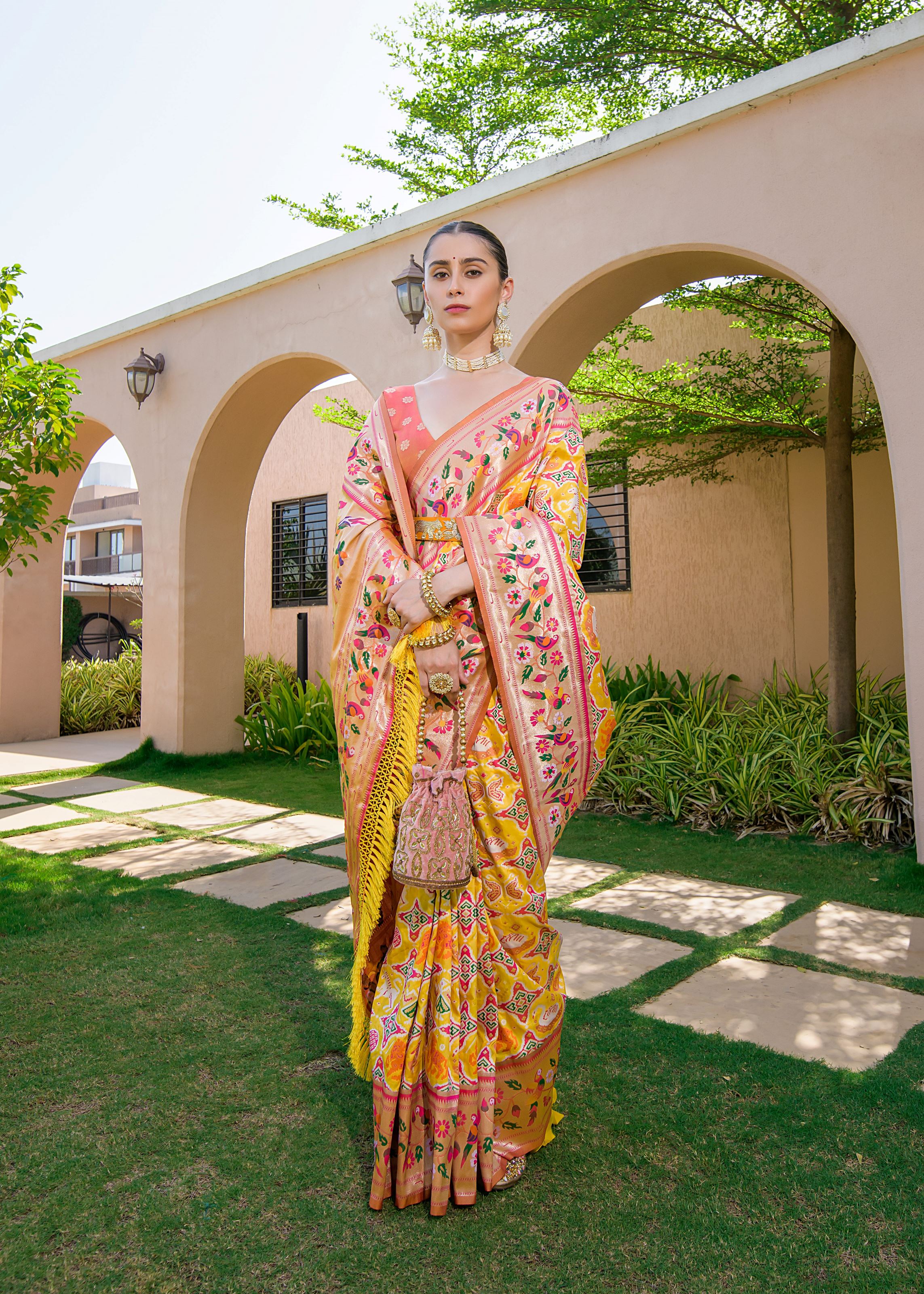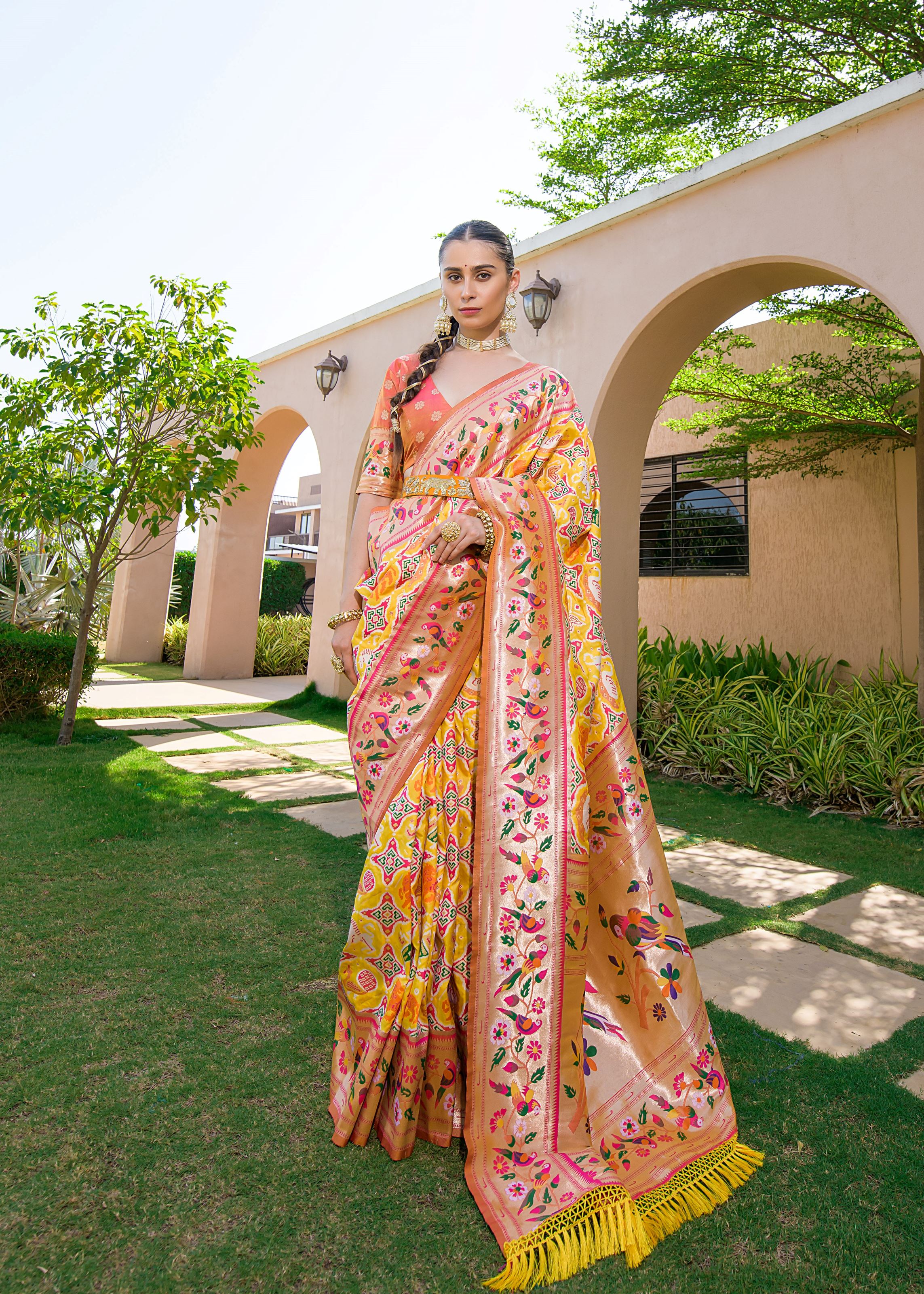Yellow Paithani Silk Saree with Meenakari Zari and Pallu
