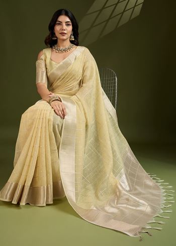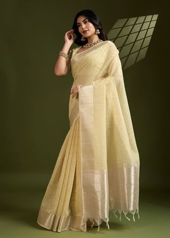Perfect for haldi ceremonies, traditional functions, or joyous celebrations, this saree is lightweight, breathable, and effortlessly stylish. Its soft texture allows for a fluid drape, offering comfort and poise throughout your event. The blend of classic weave and a festive palette makes it a wardrobe essential for those who appreciate timeless elegance.