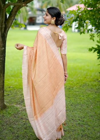 Brighten up your wardrobe with this radiant Yellow Tussar Silk Saree with Checks and Contrast Pallu from Aethnofit Fashions. Crafted in luxurious tussar silk, the saree features a cheerful yellow tone enriched with delicate check patterns that add dimension and texture. The contrasting pallu offers a sophisticated twist, while the cream tussar silk blouse provides a balanced and elegant finish to this vibrant ensemble.
